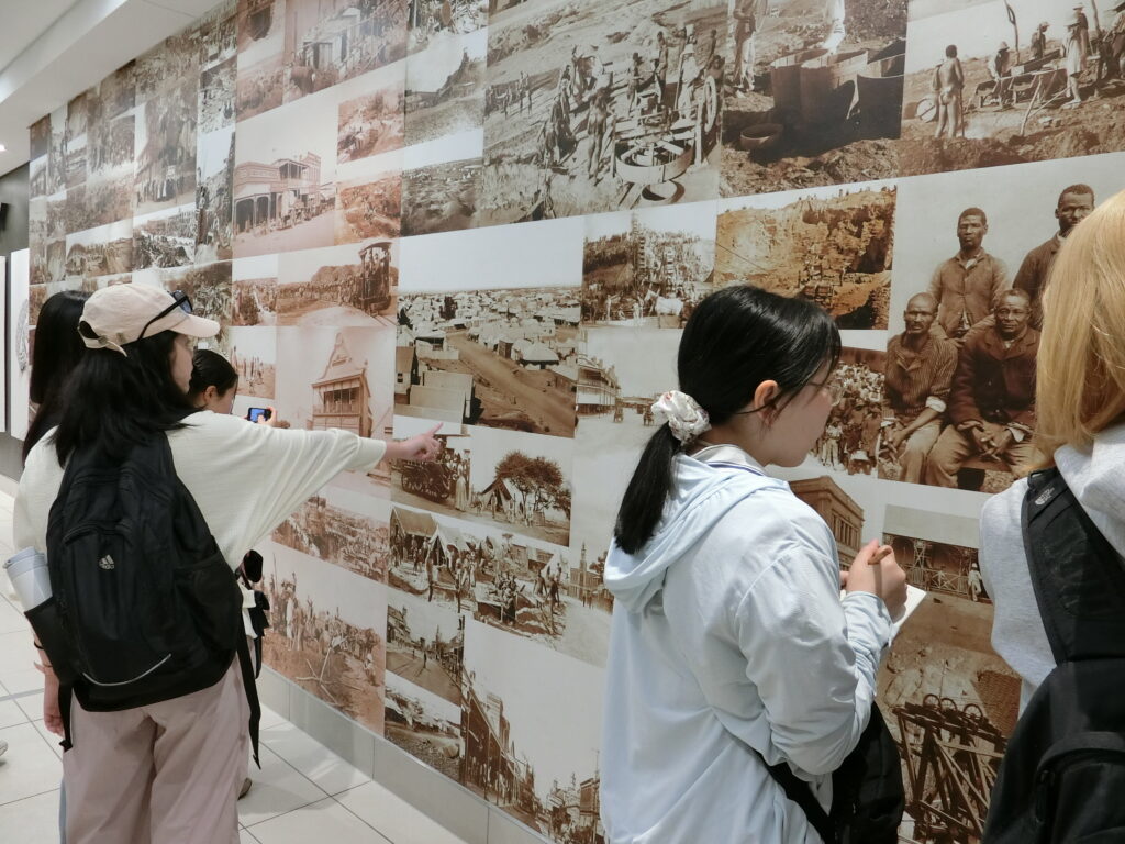 受講した8名の学生ら(英文学科、グローバル・スタディーズ学科、総合文化学科、環境・バイオサイエンス学科)は現地で、アパルトヘイト、奴隷、ジェノサイドなどに関する博物館の見学、ステレンボッシュ、ケープタウンとプレトリアの三大学における教員、学生、弁護士、学生活動家との対話、2つのタウンシップ(アパルトヘイト時代につくられた黒人専用居住区)の見学、反アパルトヘイト運動家、移民や難民との対話、難民の職業訓練の見学など、さまざまなプログラムを体験しました。